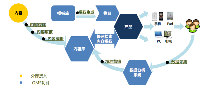 核心产品包括“移动互联网多媒体 运营管理系统”OMS、“移动终端虚拟操作系统”WRP,现都已纳入融合媒体生态系 统解决方案中。其他核心解决方案包括 AI 视频大数据解决方案、超高清大视频平台解 决方案等。核心产品 OMS 实现将外部导入的多媒体内容存入内容库,运营人员可从 模板库中提取栏目,与内容结合生成产品,最终统一在手机、PC 等终端发布。