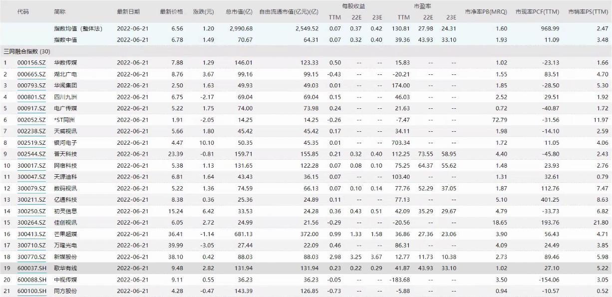 2022Q2 三网融合指数下跌