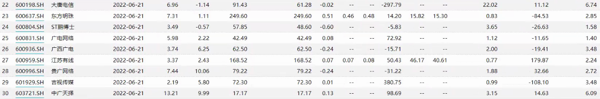 (2)江苏有线[600959.SH]:江苏省广电有线信息网络股份有限公司的主营业务是广电网络的建设运营,广播电视节目传输,数据宽带业务以及数字电视增值业务的开发与经营,主要产品有有线电视服务。