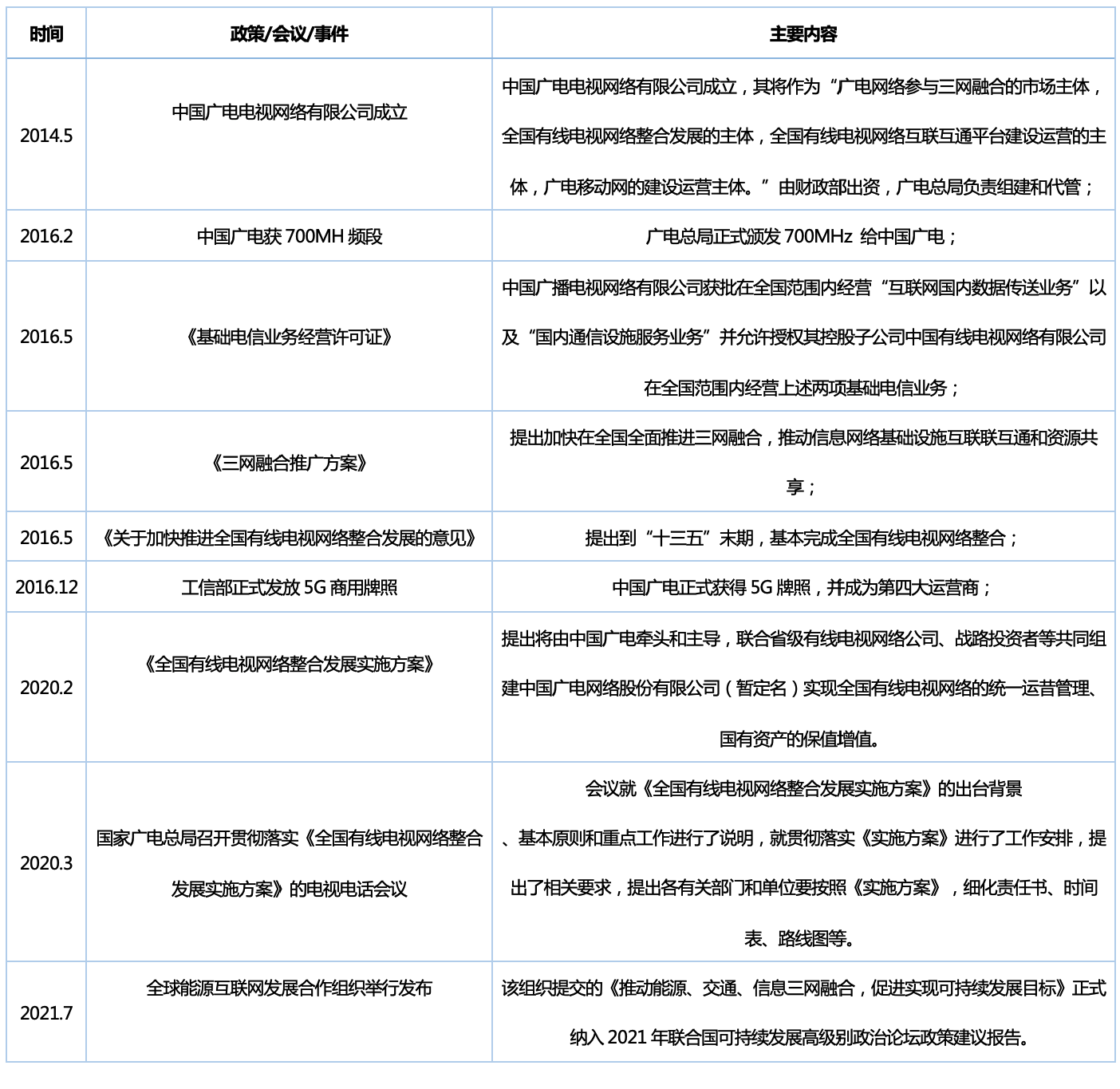 表 “三网融合”重点政策汇总