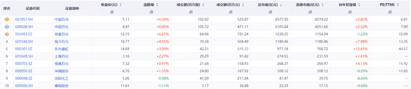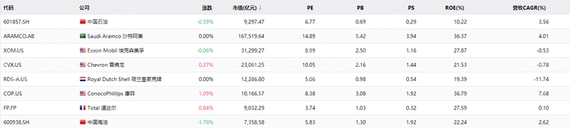 (1)中国石油[601857.SH]:是国有重要骨干企业和全球主要的油气生产商和供应商之一,是集国内外油气勘探开发和新能源、炼化销售和新材料、支持和服务、资本和金融等业务于一体的综合性国际能源公司,在全球32个国家和地区开展油气投资业务。2021年,在世界50家大石油公司综合排名中位居第三,在《财富》杂志全球500家大公司排名中位居第四。