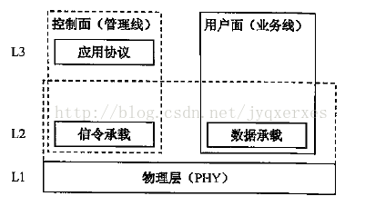 不同接口协议细节有所不同,但在架构上都可套用如图所示的三层两面协议栈通用模型。