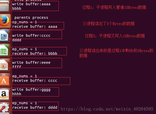 *子进程每次发10个字节的数据,然后延时5s,父进程每次收5个字节的数据,