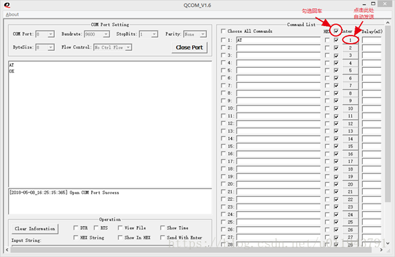 注意:所有AT指令后都是需要回车的,这样BC28才能识别出指令,所以如下图在Enter左边勾选回车选项,所有命令中不得有中文、中文字符和空格。