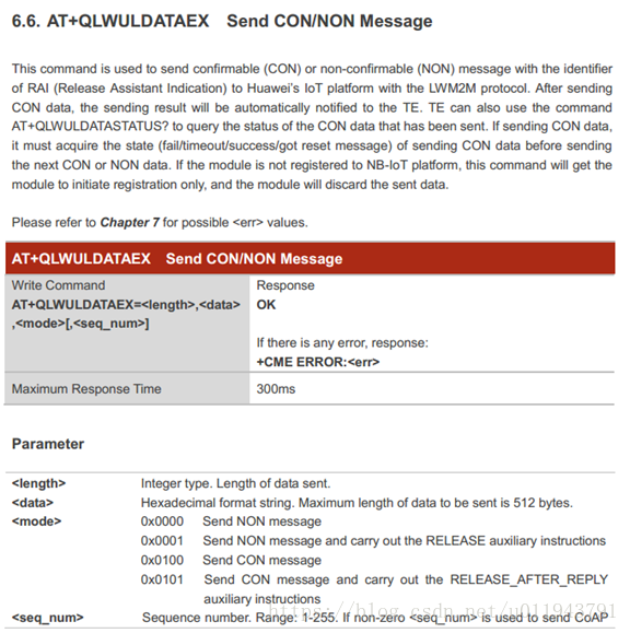 AT+NSORF=1,4 //Read the messages,读取到的值是之前发送的数据0X01020304