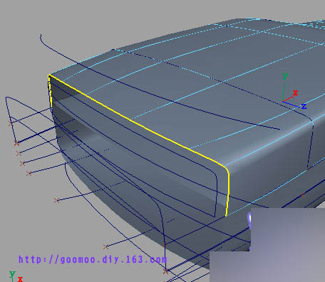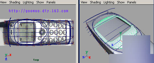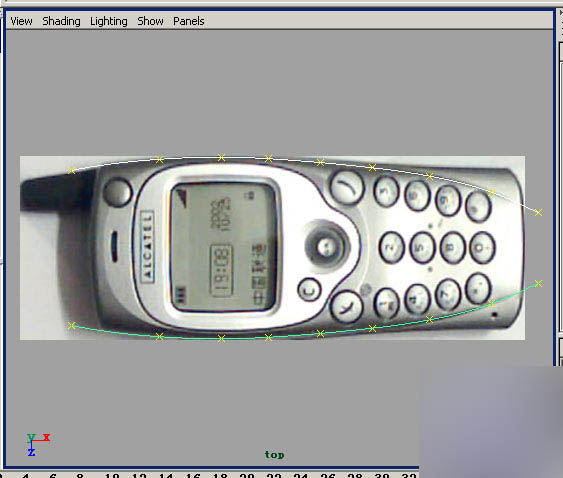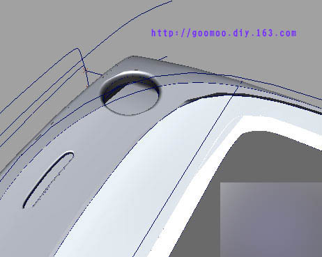 勾画手机顶面上曲面折叠处的两条结构线。先画一条,然后实例复制另外一条,并显示出其editpoint。