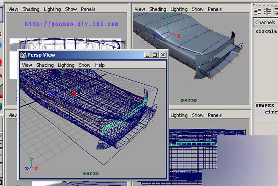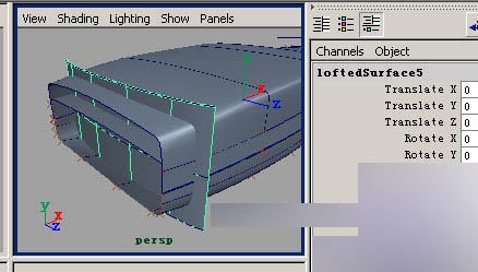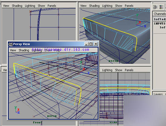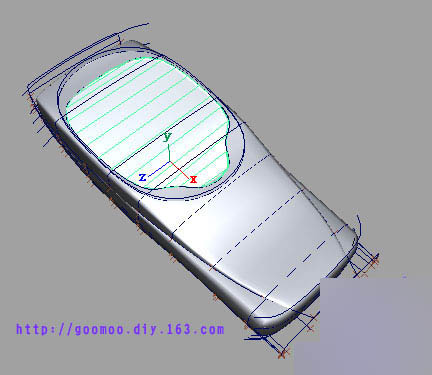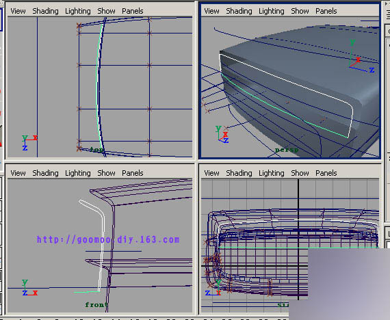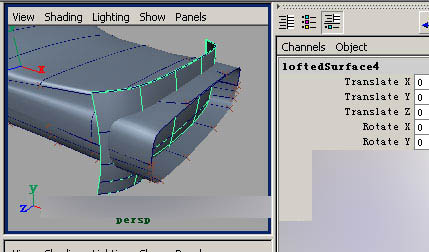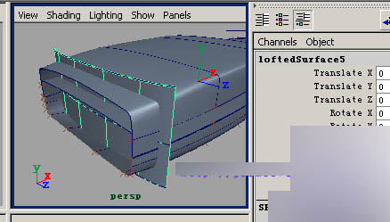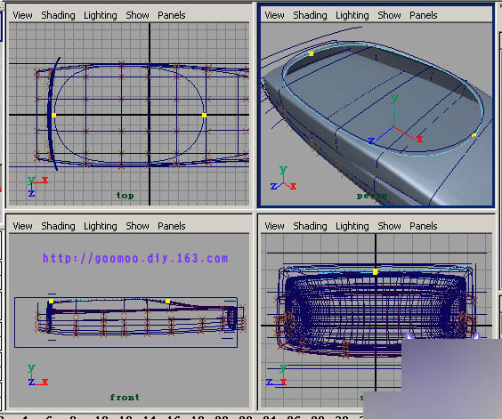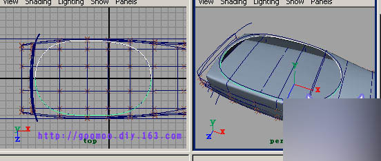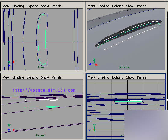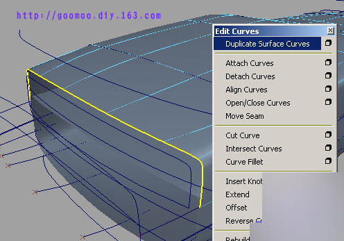 在上一步骤中,使用复制和调整CV点。复制顶面曲线,调整其CV,如图。
