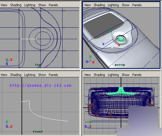 本教程向朋友们介绍Maya精细手机建模概要教程,教程介绍的主要是制作思路,讲述的还是很详细的,希望对朋友们有所帮助!我们先来看一下前视图