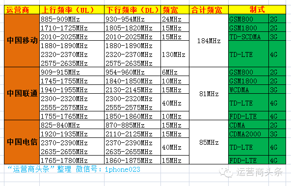 五、我国运营商移动通信频段