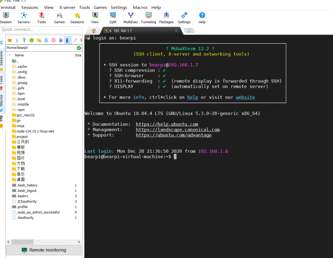 我们可以使用MobaXterm工具登录我们的Ubuntu,这个工具在我们之前的笔记中也有用到,这是个一款很强大的远程终端软件: