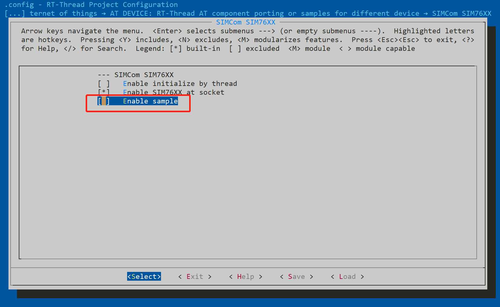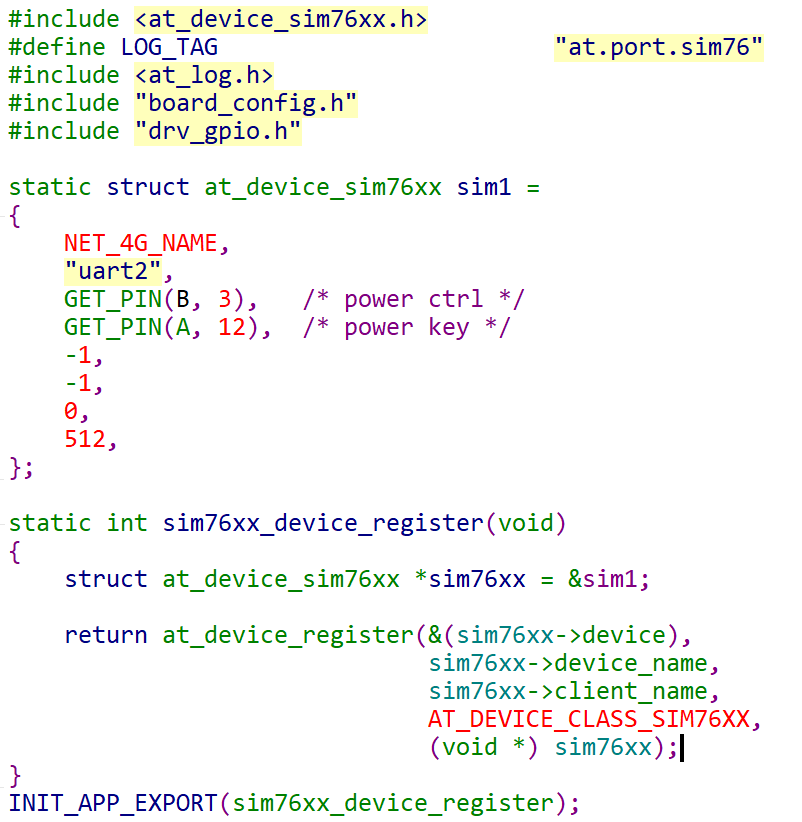 AT Device软件包自带SIM76XX的支持,开启方法如下: