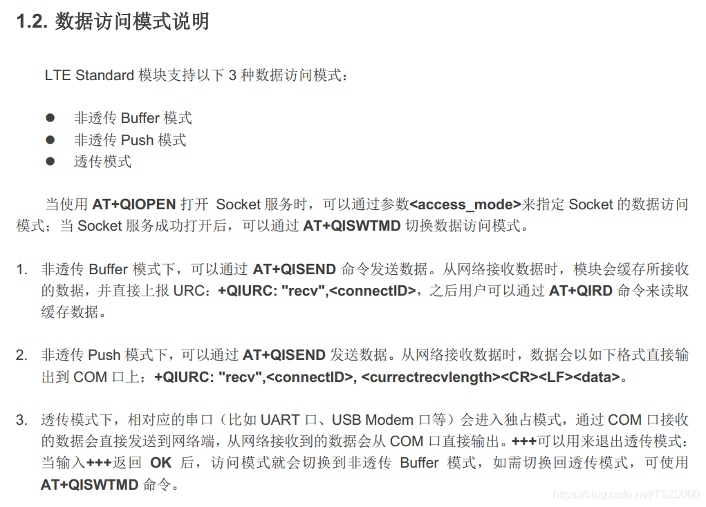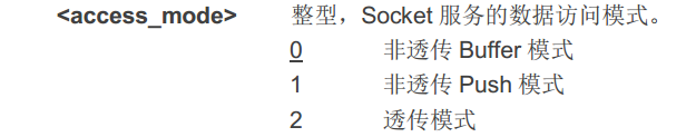 Buffer模式,Push模式,透传模式。通过参数<access_mode>进行配置。