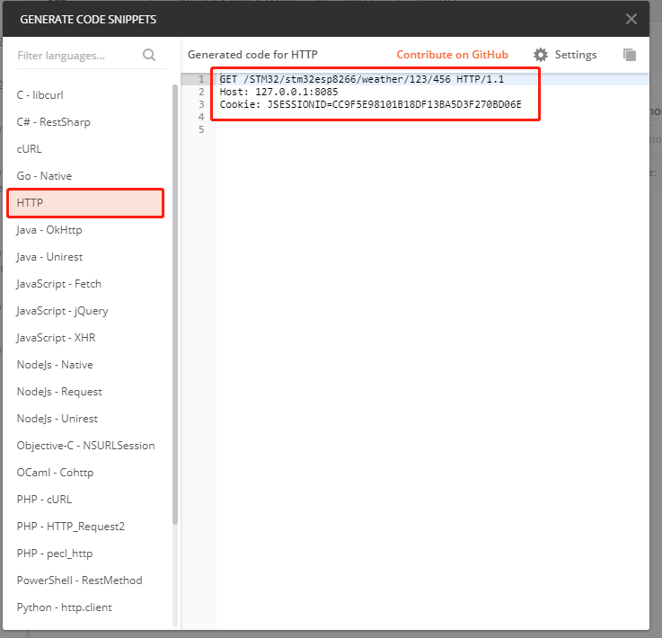 同样使用postman的Cide工具查看HTTP访问代码