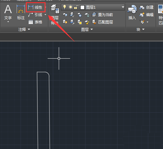7、画好角钢之后,在上面找到线性标注选项,如图所示: