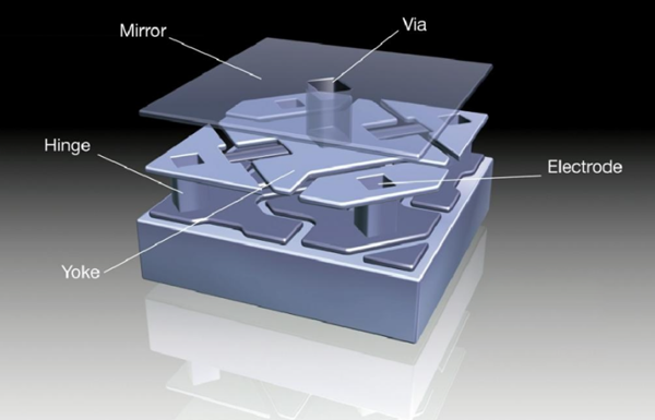 基于DMD技术的数字光线处理(DLP)投影技术较于LCD液晶显示有着更高的对比度,并且画面更清晰、稳定。由于采用MEMS技术,运用了发射光成像的光学原理,实现了图像处理数字化。