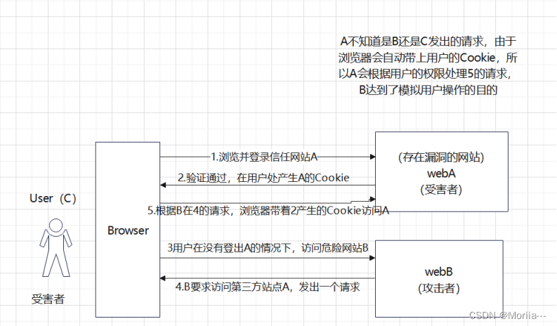 - 在不登出A的情况下,访问危险网站B