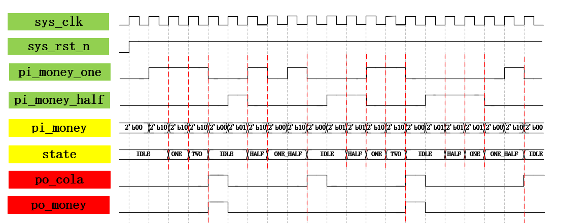 代码时序逻辑波形图绘制(设高电平持续一个时钟周期表示投入了一枚硬币)