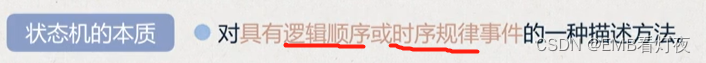 作用领域:状态机适合描述那些顺序发生,有时序规律的事件。