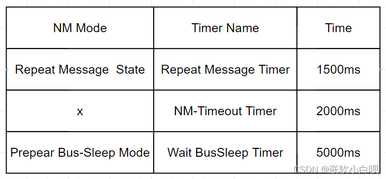 各个状态的时间参数示例如下(以某大型车企为例,不同的车企,CANNM的时间参数需求一般都不一致)