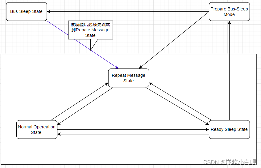 从上面的状态机可以看出,ECU被唤醒后,必须先经过Repeat Message State。