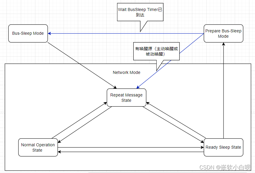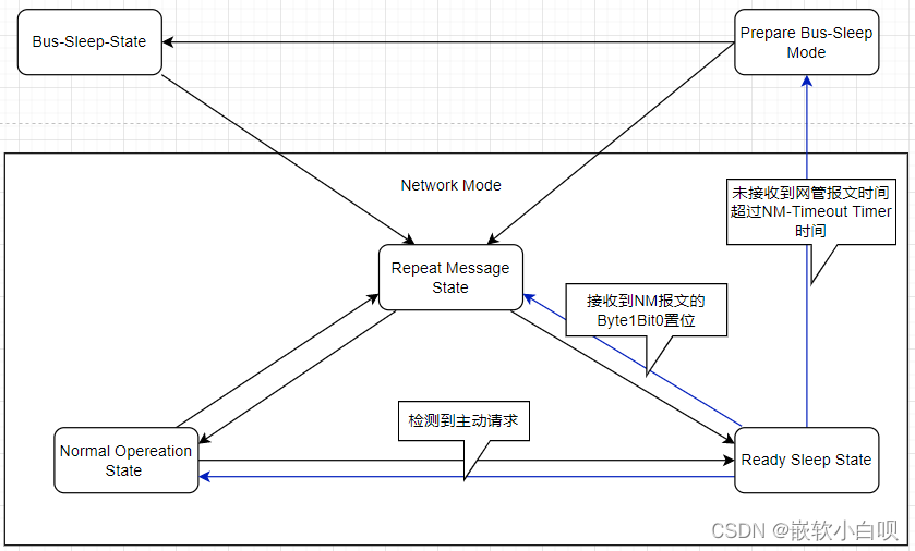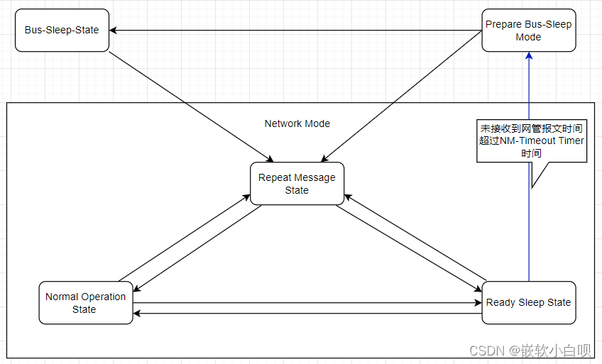 (当进入Repeat Message State、Normal Opearation State、Ready Sleep State时,都成CANNM处于Network Mode)