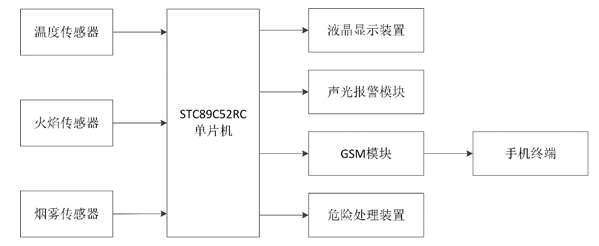 整个系统使用户无论是否在家都可以了解到室内情况,从而达到了远程监控房屋是否有火灾发生、避免火灾扩大,帮助室内有可能存在的人员及时安全撤离的目的,该系统对实际应用具有理论指导意义。