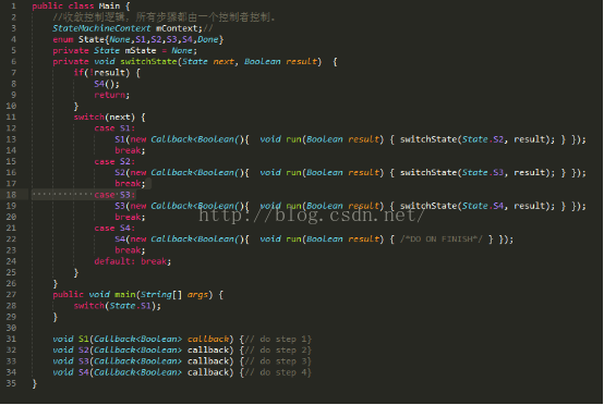 原来的异步代码依赖语言级闭包运行,无法从中间状态开始(比如越过S1,从S2->S4),但如果我们转换思想,将语言级的闭包变成自定义的局部上下文(状态机),一切迎刃而解,实现方案如下:
