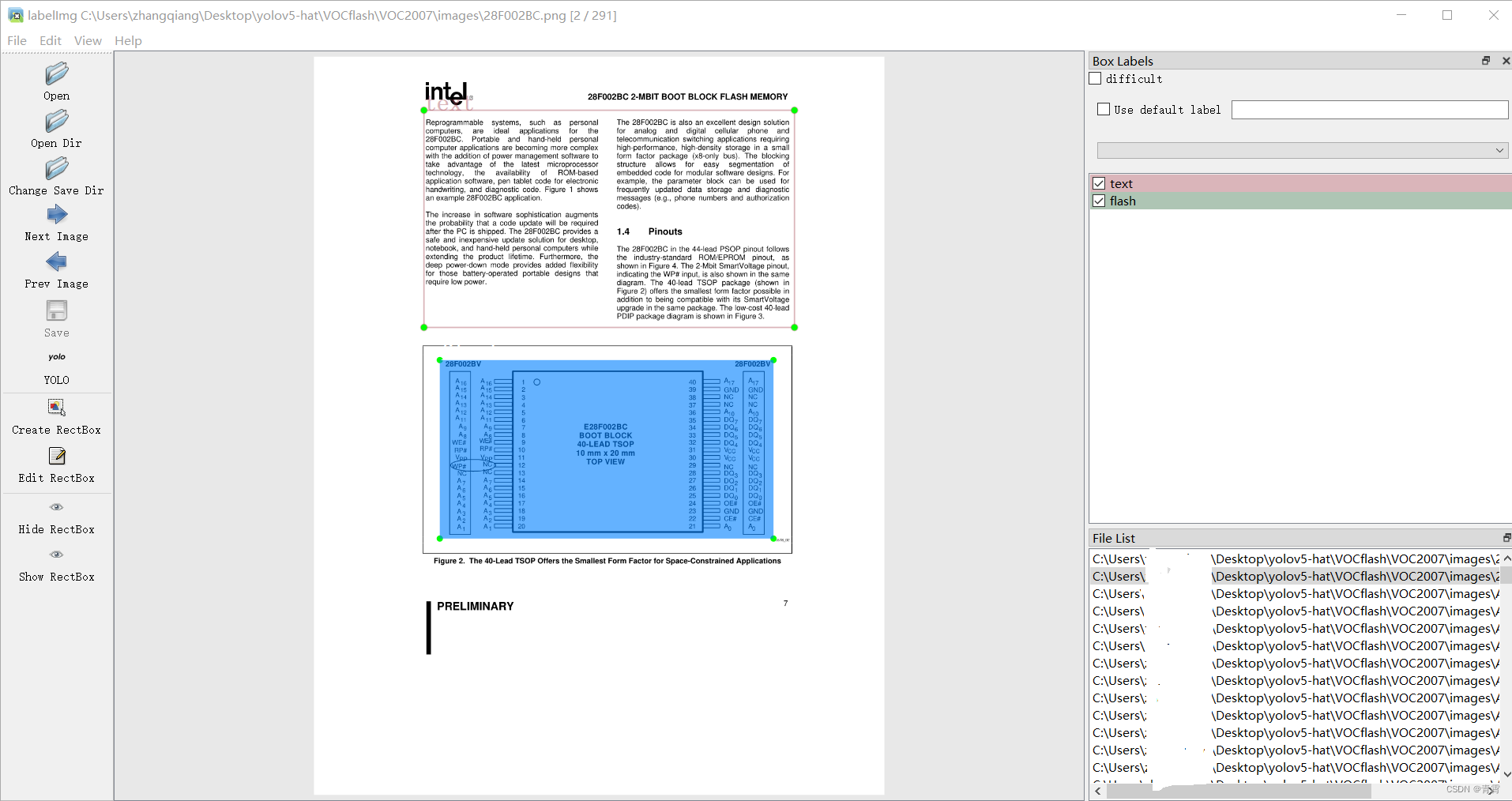 修改data目录下的相应的yaml文件。找到目录下的voc.yaml文件,将该文件复制一份,将复制的文件重命名,最好和项目相关,这样方便后面操作。我这里修改为flash.yaml。该项目是对芯片引脚的识别。