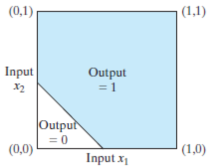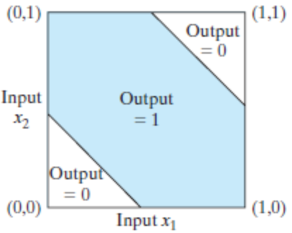 无法找出一条直线作为决策边界,可以使(0,0)和(1,1)在一个区域,而(1,0)和(0,1)在另一个区域。