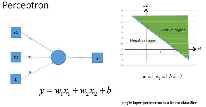 单个神经元是神经网络的最基本组成单元(1层1神经元的神经网络退化为感知机模型),单个的感知机的本质就是一个一元线性分类函数,用它可以划出一条线,把一维平面分割开: