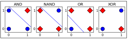 但是,当面对更复杂的问题时,一元线性分类函数(一维平面)就无法解决了。例如”电路模拟中的XOR运算问题“。