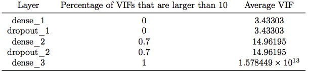 计算层与层之间神经元的平均VIF结果如下: