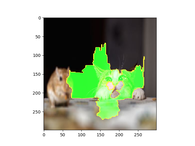 # -*- coding: utf-8 -*- import matplotlib.pyplot as plt import numpy as np import os import keras import os, sys try: import lime except: sys.path.append(os.path.join('..', '..')) # add the current directory import lime from lime import lime_image from keras.applications import inception_v3 as inc_net from keras.preprocessing import image from keras.applications.imagenet_utils import decode_predictions from skimage.io import imread from skimage.segmentation import mark_boundaries print('run using keras:', keras.__version__) def transform_img_fn(path_list): out = [] for img_path in path_list: img = image.load_img(img_path, target_size=(299, 299)) x = image.img_to_array(img) x = np.expand_dims(x, axis=0) x = inc_net.preprocess_input(x) out.append(x) return np.vstack(out) if __name__ == '__main__': # Using Inception # Here we create a standard InceptionV3 pretrained model, # and use it on images by first preprocessing them with the preprocessing tools inet_model = inc_net.InceptionV3() # Let's see the top 5 prediction for some image img_path = os.path.join('data', 'cat_and_mouse.jpg') print "img_path: ", img_path images = transform_img_fn([img_path]) # I'm dividing by 2 and adding 0.5 because of how this Inception represents images plt.imshow(images[0] / 2 + 0.5) plt.show() preds = inet_model.predict(images) for x in decode_predictions(preds)[0]: print(x) # Explanation # Now let's get an explanation explainer = lime_image.LimeImageExplainer() # hide_color is the color for a superpixel turned OFF. # Alternatively, if it is NONE, the superpixel will be replaced by the average of its pixels. # Here, we set it to 0 (in the representation used by inception model, 0 means gray) explanation = explainer.explain_instance(images[0], inet_model.predict, top_labels=5, hide_color=0, num_samples=1000) # Now let's see the explanation for the Top class # We can see the top 5 superpixels that are most positive towards the class with the rest of the image hidden temp, mask = explanation.get_image_and_mask(explanation.top_labels[0], positive_only=True, num_features=5, hide_rest=True) plt.imshow(mark_boundaries(temp / 2 + 0.5, mask)) plt.show() # Or with the rest of the image present: temp, mask = explanation.get_image_and_mask(explanation.top_labels[0], positive_only=True, num_features=5, hide_rest=False) plt.imshow(mark_boundaries(temp / 2 + 0.5, mask)) plt.show() # We can also see the 'pros and cons' (pros in green, cons in red) temp, mask = explanation.get_image_and_mask(explanation.top_labels[0], positive_only=False, num_features=10, hide_rest=False) plt.imshow(mark_boundaries(temp / 2 + 0.5, mask)) plt.show() # Or the pros and cons that have weight at least 0.1 temp, mask = explanation.get_image_and_mask(explanation.top_labels[0], positive_only=False, num_features=1000, hide_rest=False, min_weight=0.1) plt.imshow(mark_boundaries(temp / 2 + 0.5, mask)) plt.show()
