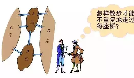 早期一个古典的问题:哥尼斯堡七桥问题很能说明这门学科的精髓所在。
