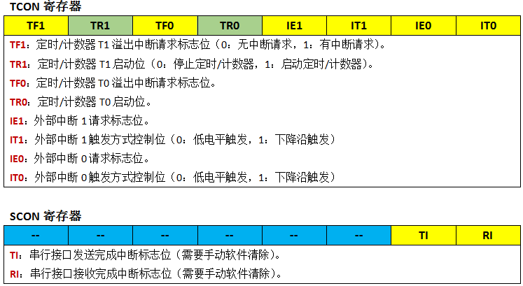 另外2个为中断请求标志:TCON寄存器与SCON寄存器: