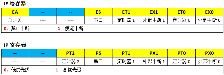 其中2个为控制寄存器:IE寄存器与IP寄存器: