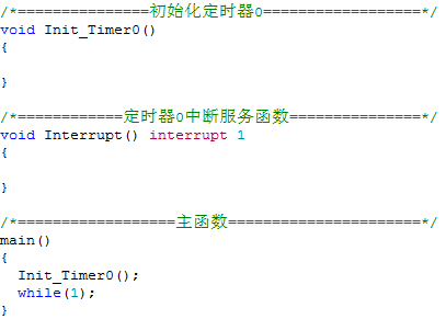 我们要利用定时器0来进行间隔定时,中断程序架构我们C语言可以这样写: