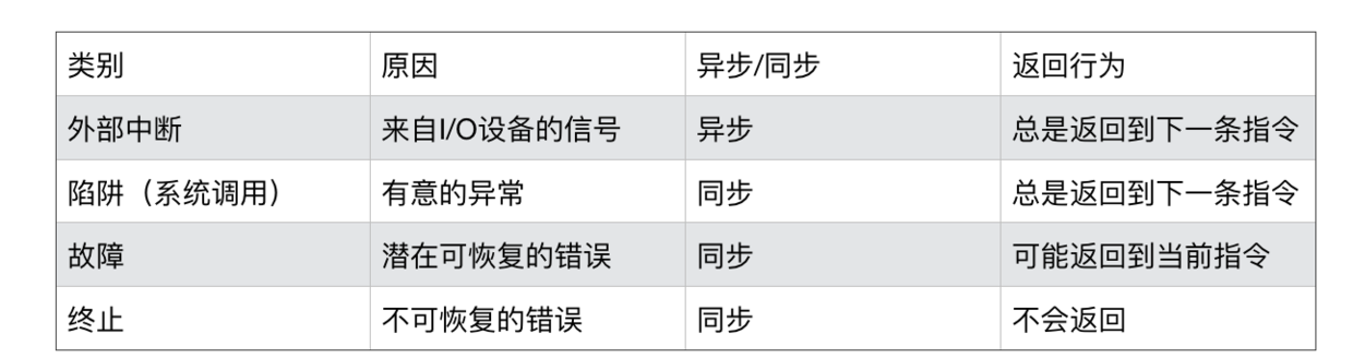 异常指当前运行指令引起的中断事件。包括错误情况引起的故障,如除零算数错误,缺页异常;也包括不可恢复的致命错误导致的终止,通常是一些硬件错误。