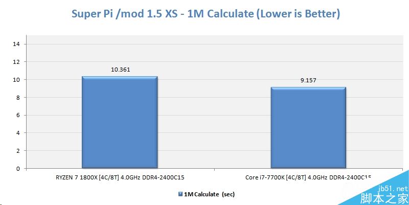 SuperPI 1M:Ryzen慢了1.2秒钟,也就是大约11%。