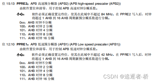 想CFGR[12:10]位写5,即4分频,因此APB1=PLLCLK/4=42M