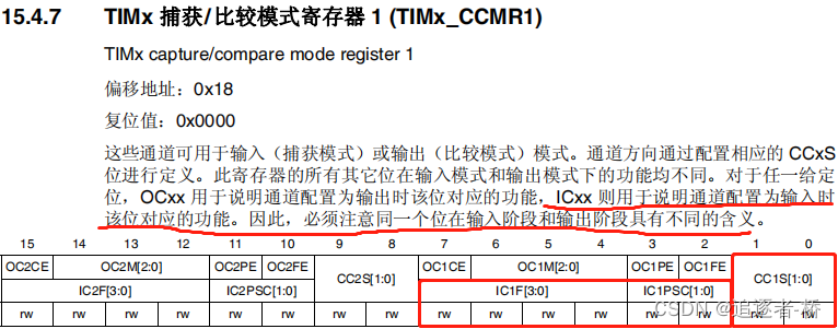 TIM5-CCMR1捕获比较寄存器1相关位描述