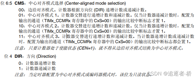 - 16 位/32 位(仅 TIM2 和 TIM5)向上、向下、向上/向下自动装载计数器(TIMx_CNT),注意:TIM9~TIM14 只支持向上(递增)计数方式。