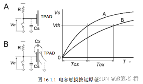 电容触摸按键:电容按键是接触式的,点一下就松开(与微动开关类似),因此需要消除抖。在之前的微动开关使用时间延迟判断两次,状态相同时才认为是按下。这里同理,这里使用的是输入捕获即手指接触一定时间后到达B认为电容按键按下。
