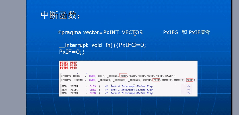 P0IFG = 0;//本寄存器对应位对应哪个脚触发中断