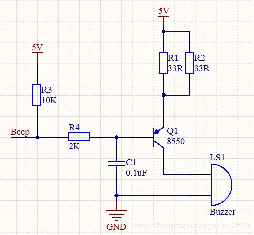 当网络节点Beep为低电平时,三极管Q1导通,蜂鸣器有电流,会响。