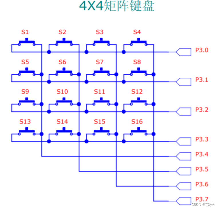 P3.2是第三行,按下第三行的随便一个键盘按钮则小灯全亮,松开键盘则小灯全暗。