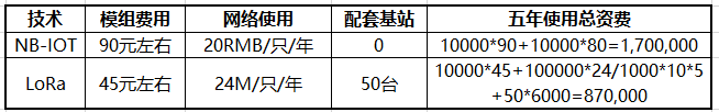 LoRa与NB-IOT资费对比
