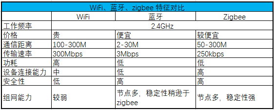 2.蓝牙,自蓝牙4.0发布BLE协议以来,蓝牙的功耗大幅降低,使用体验大幅上升,所以这两年应用非常广。加之BLE Mesh的发布,低功耗低成本的特点,大有要取代zigbee的趋势。