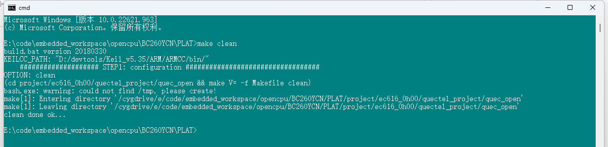 双击目录下cmd,打开控制台,输入“make clean”命令