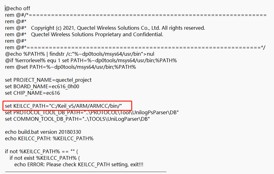 用记事本打开make.bat文件,将keilcc的路径修改成你本地电脑上的路径: